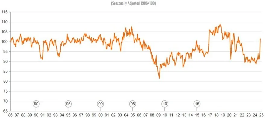 One of the positives is a surge in small business confidence coinciding with clarity on the election outcome. Going into the election, we witnessed very high levels of business uncertainty which now likely reflects pent-up demand in the economy. Business confidence had been falling for the last six years and had been lower in the last few years than even the lowest point of the pandemic in ’20. This is certainly a welcome change if it can be sustained: