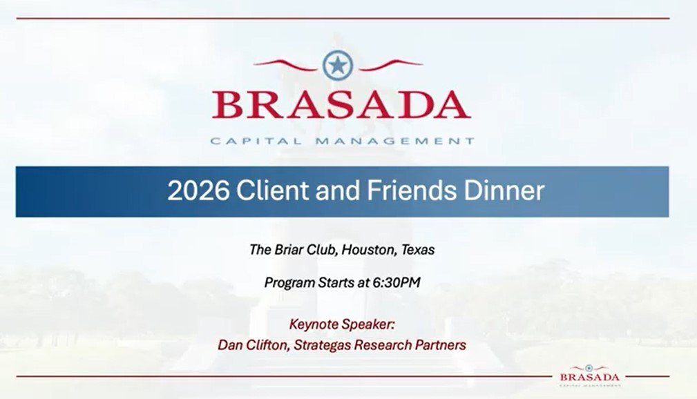 We're delighted to share with you a replay of Brasada Capital Management’s Annual Client and Friends Dinner. Each year this event stands out as a highlight, bringing our valued clients and friends together in a gathering filled with insight and fellowship.