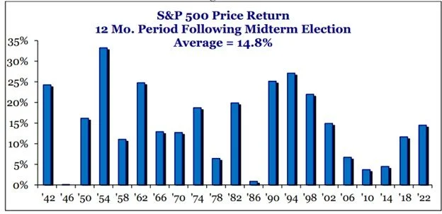 2026 is a Midterm Election year, and in these years the market tends to sell off at some point before the election. The good news is that since 1942 the market has been up in every 12 month period following the Midterms. Eventually, this trend may be broken, but for now it is something to be aware of as seen in the chart below.