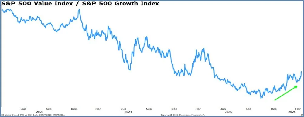 The Magnificent 7 are all great companies and they comprise 35% of S&P 500 index. For the past several years, no effective alternative seems to have emerged. As a result, it is likely that most investors are significantly over indexed to a narrow group of holdings, which may leave those portfolios more vulnerable to periods of rotation. The Magnificent 7 have been great investments over the last 10 years, but we expect that there will be better investment returns elsewhere over the next 10 years. The chart below highlights how one sided the market has been for the last 3 years. In our view this has developed into a trend since the great financial crisis, but we believe 2026 will most likely mark the peak.